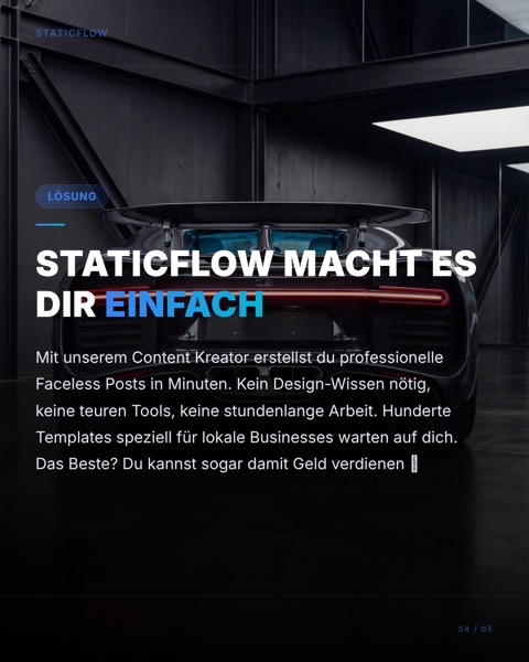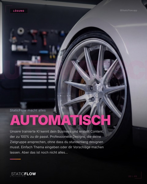 Egal ob Autopflege, Gastronomie, Immobilien oder Beauty — die KI erkennt automatisch den Kontext und erstellt den passenden Look.